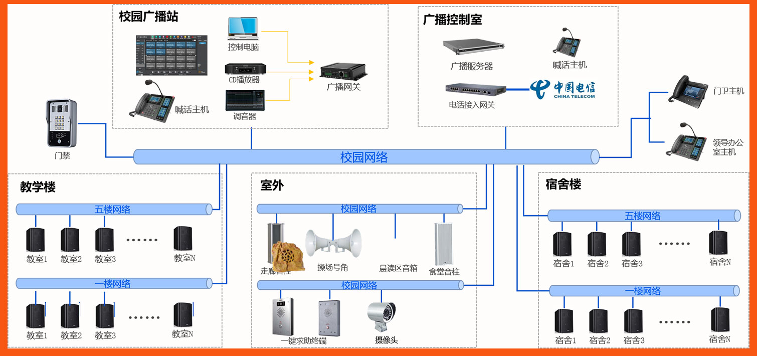 某重點(diǎn)中學(xué)的校區(qū)廣播同步方案